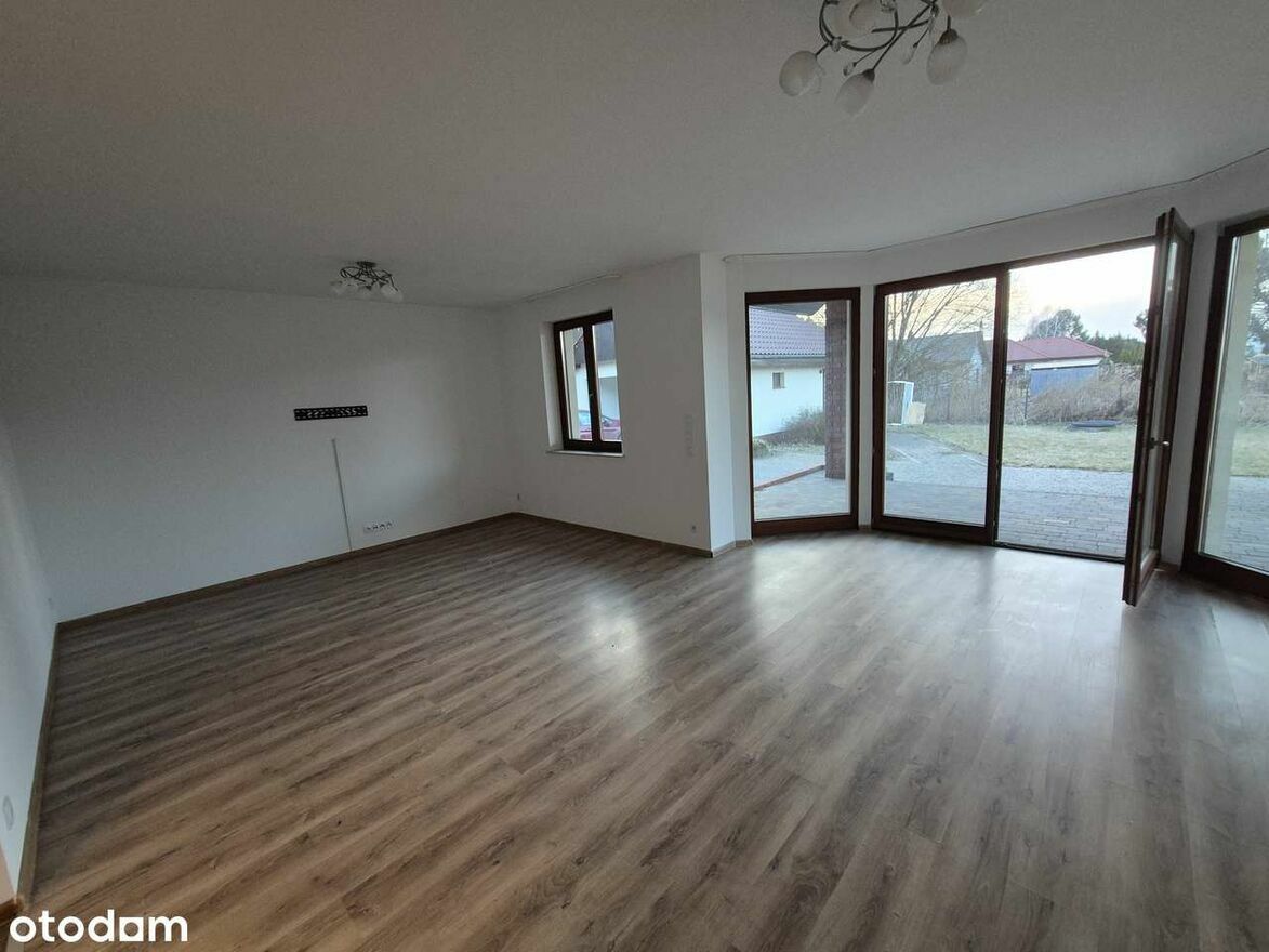 Do wynajęcia przestronny dom o powierzchni 160 m². Nieruchomość składa się z 5 pokoi i znajduje się na parterze. Posiada użytkowy strych oraz garaż. Budynek z 2016 roku, wybudowany z cegły, gotowy do zamieszkania. Ogrzewanie gazowe i wysoka klasa energetyczna A+.Dom położony jest w cichej okolicy pod miastem. W pobliżu znajdziesz lasy, które zapraszają do spacerów. W okolicy znajdują się:
